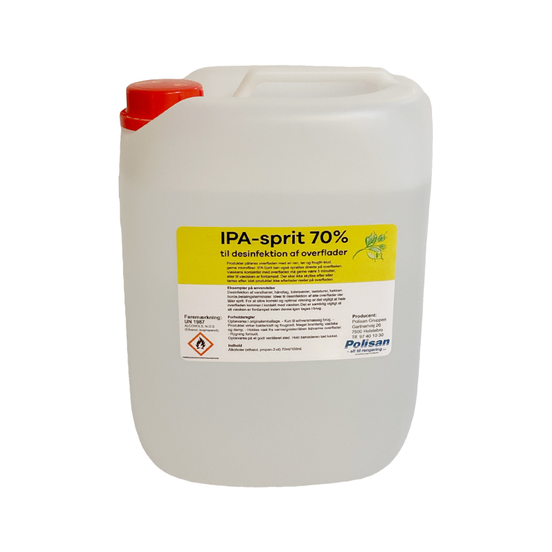 Alkoholbaseret desinfektionssprit til overflader og udstyr. Hurtigvirkende og med hele 70% desinfektionssprit.