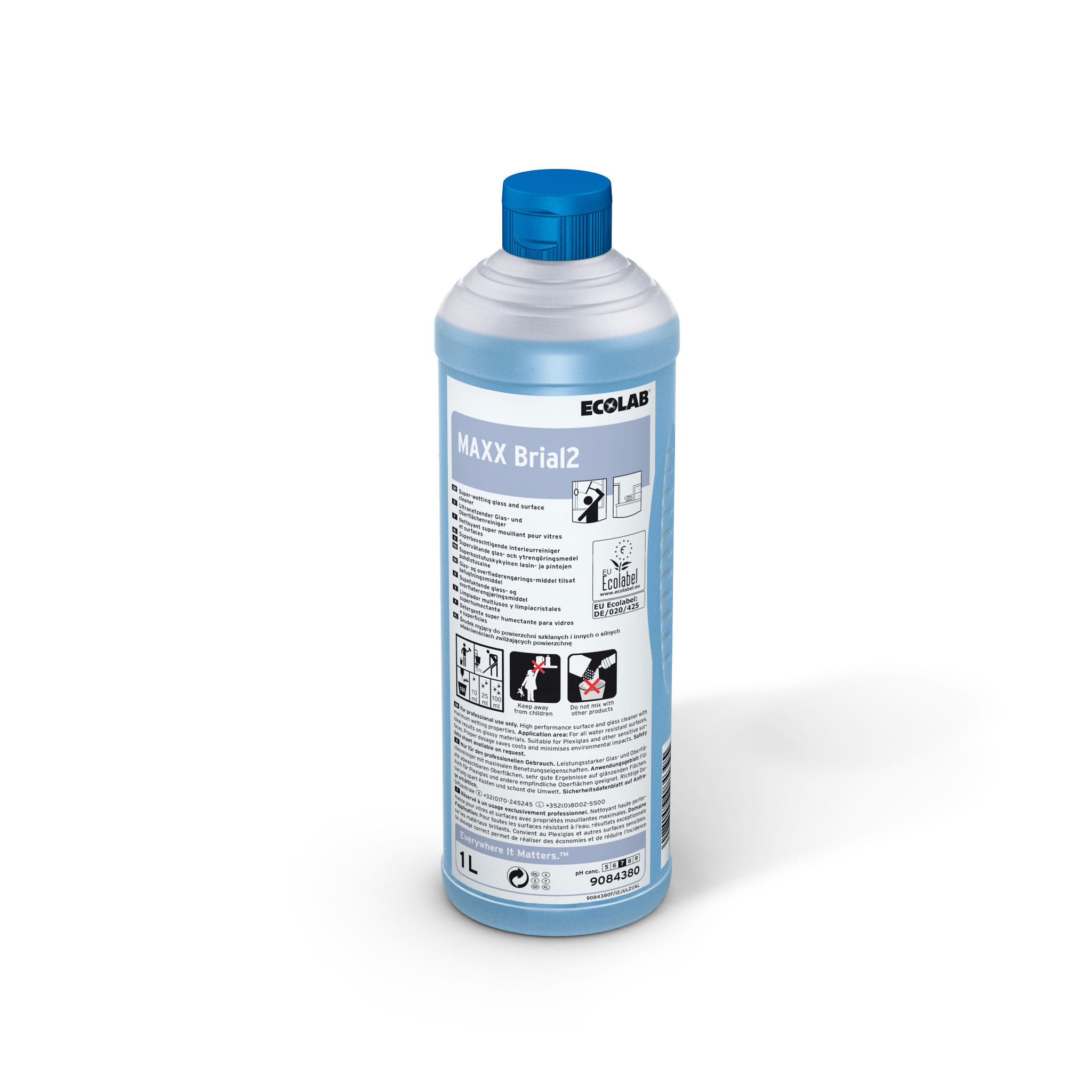 MAXX Brial2 er et stærkt koncentreret, befugtende rengøringsmiddel fra Ecolab, designet til daglig rengøring af kontorer, offentlige bygninger, skoler og hospitaler. Produktet er effektivt på glas, vandafvisende og porøse overflader, og efterlader ingen striber.