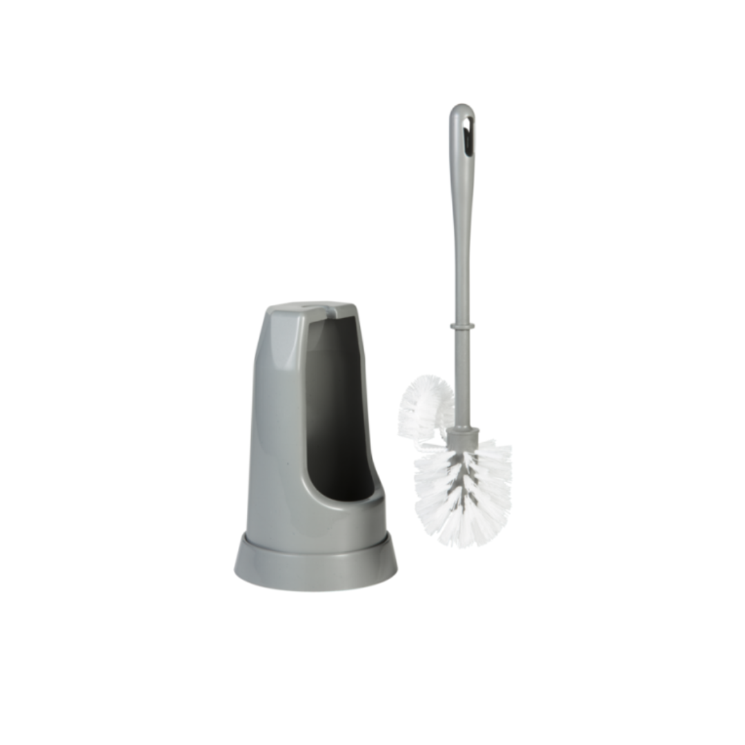 Toiletbørste monteret med ekstra sidebørste til rengøring under selve skyllekanten. Meget universel toiletbørste, da den til tilgå alle steder i kummen.