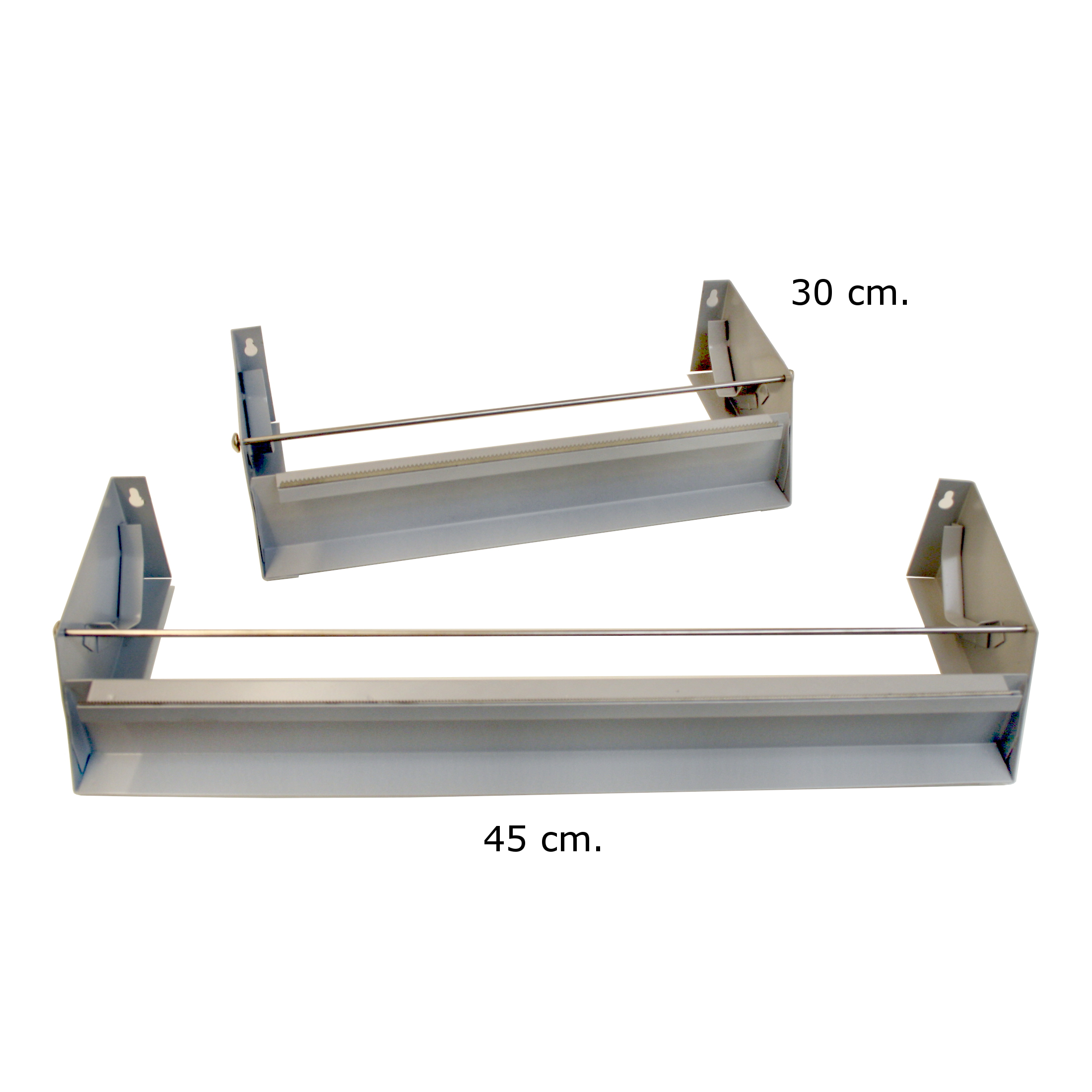 Vægdispenser med savklinge. Passer til alle folietyper med paprør (Hylse) på 30 cm.